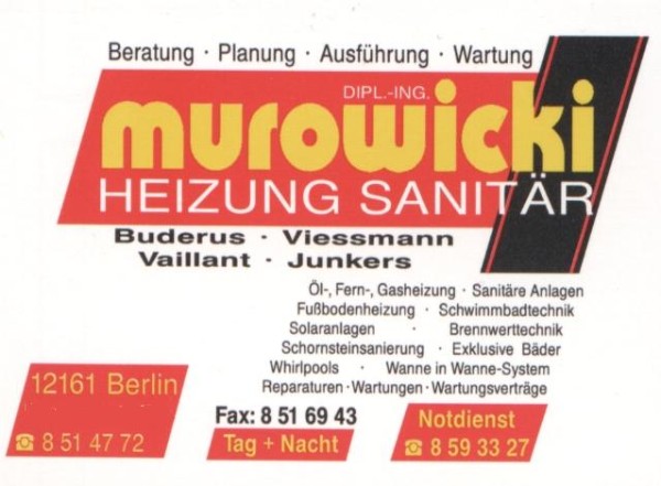 Marian Murowicki ,Tel. 030/ 851 47 72 Fax 030/851 69 43 ,Berlin